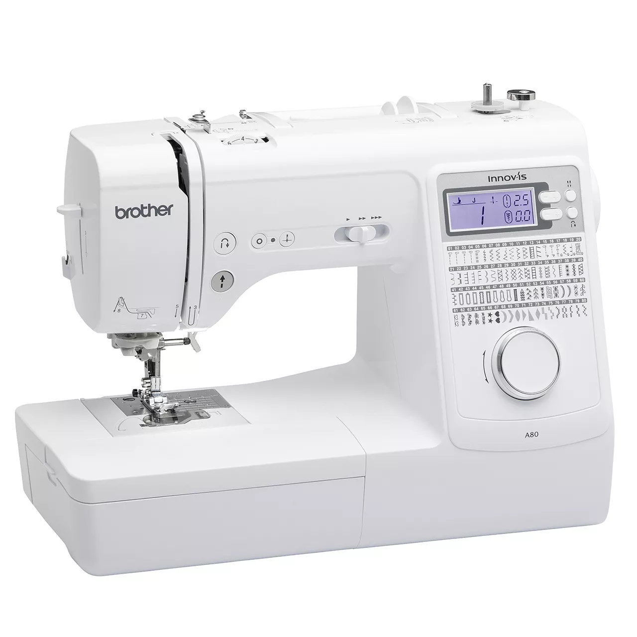 A80 Elektronik Dikiş Makinesi, 80 farklı dikiş deseni ve 8 farklı otomatik ilik açma seçeneği sunar.